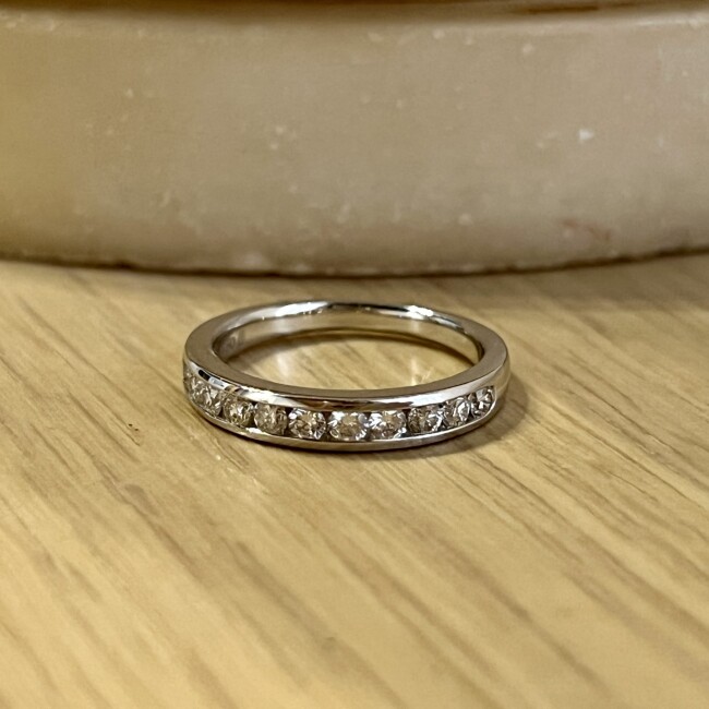 Alliance en rose, diamants de taille baguette et diamants de taille princesse