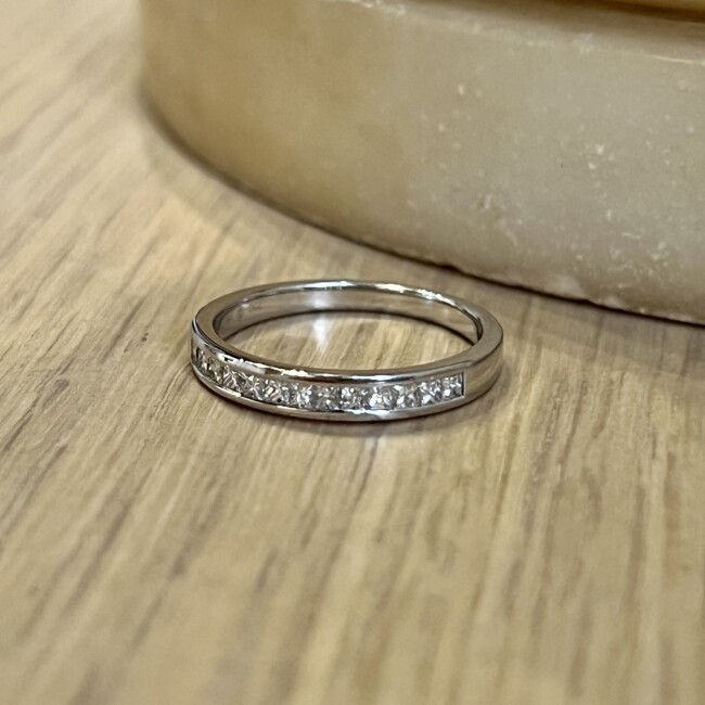 Alliance en or blanc et diamants de taille princesse
