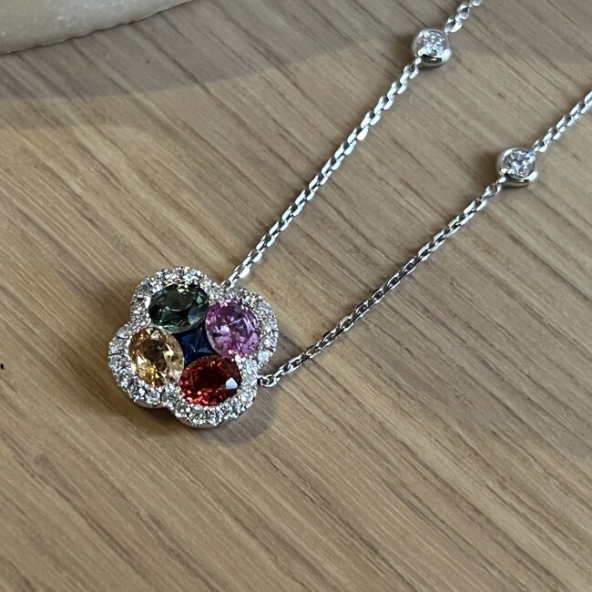 Collier Kuroba en or blanc, saphirs multicolores et diamants
