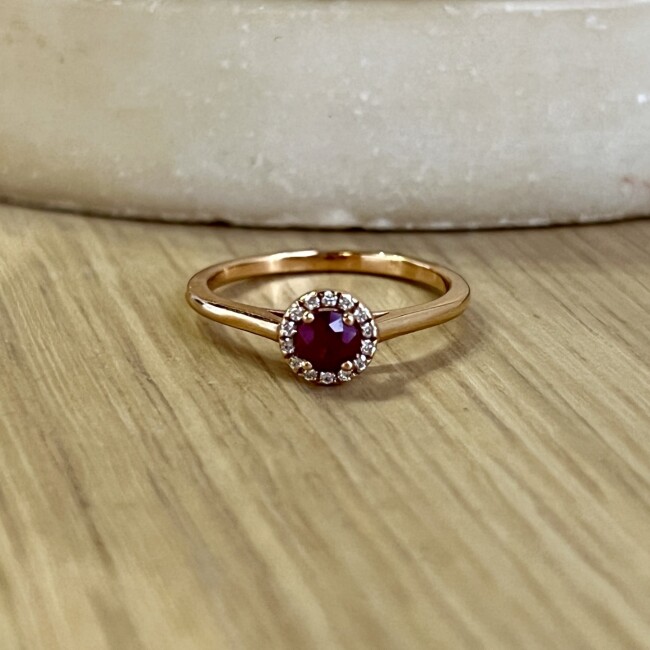 Solitaire en or blanc, rubis de taille ovale et diamants
