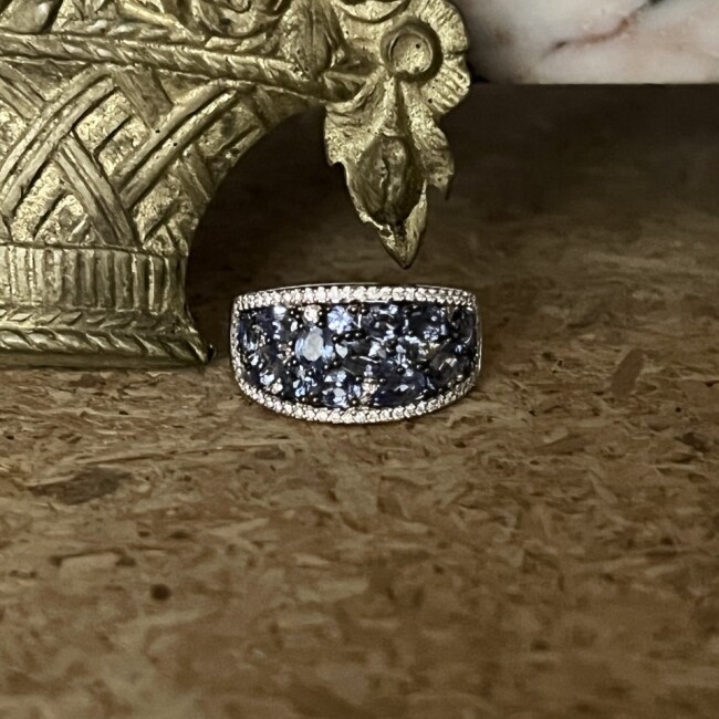 Mosaïque Bague Mosaïque en or blanc, saphirs et diamants