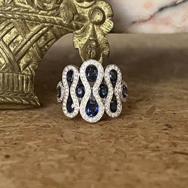 Pompadour Bague Pompadour en or blanc, saphir et diamants