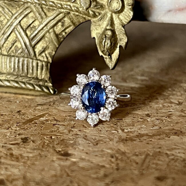 Daisy Bague Daisy en or blanc, saphir de taille ovale de 1,82 carat et diamants