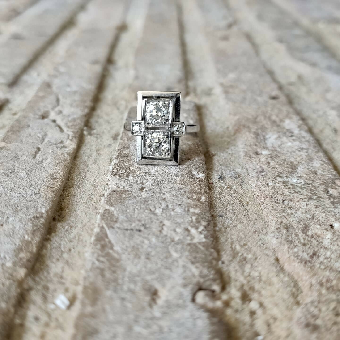 Bague en or blanc, monture d'inspiration Art Déco, sertie de diamants