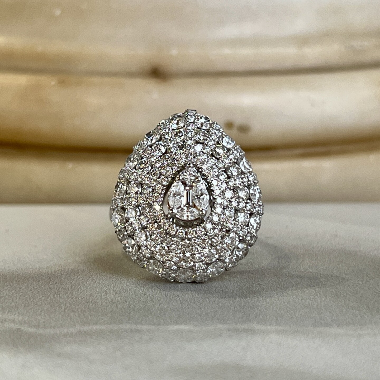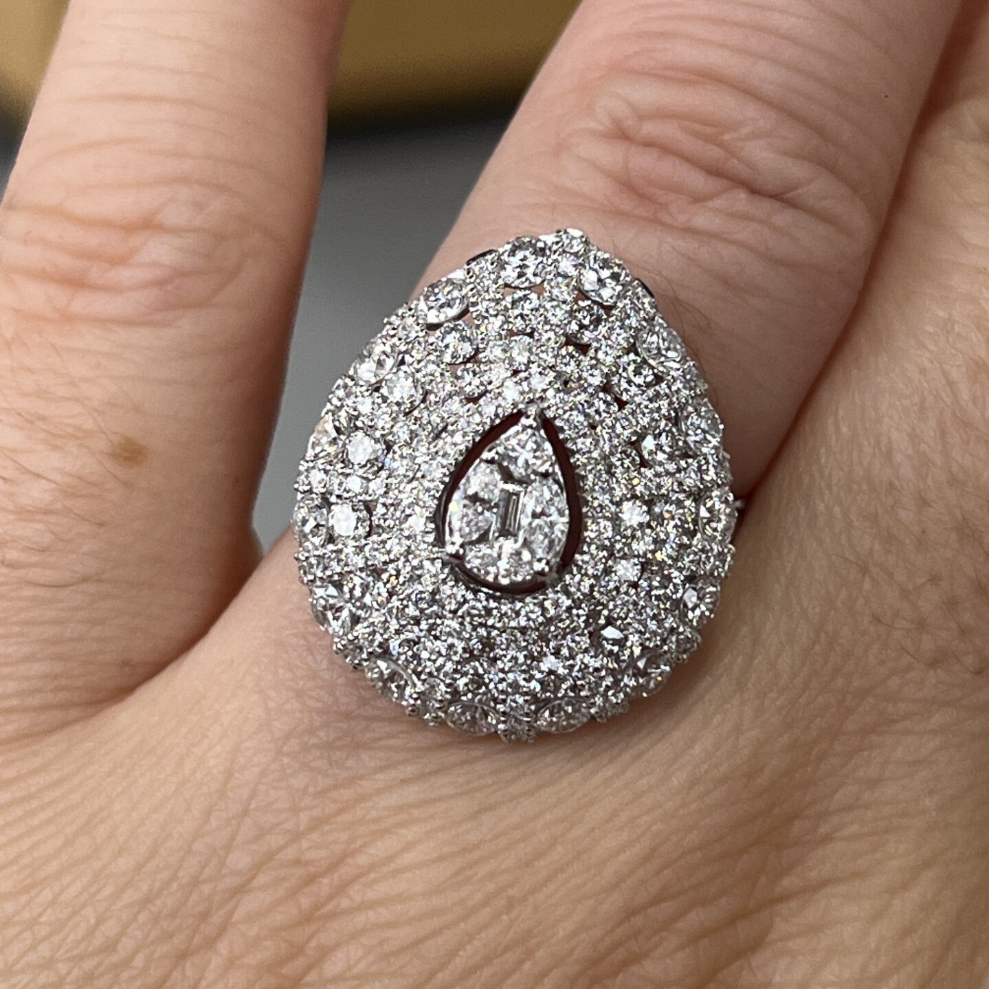 Bague Corsica en or blanc et diamants taille marquise, baguette et diamants pour 2,70 carats