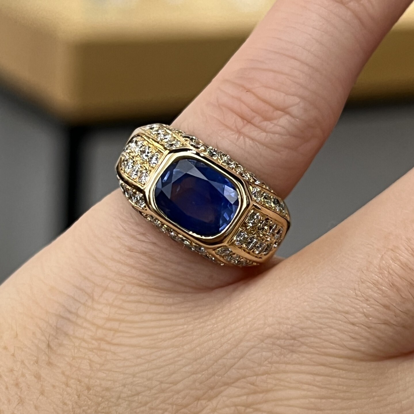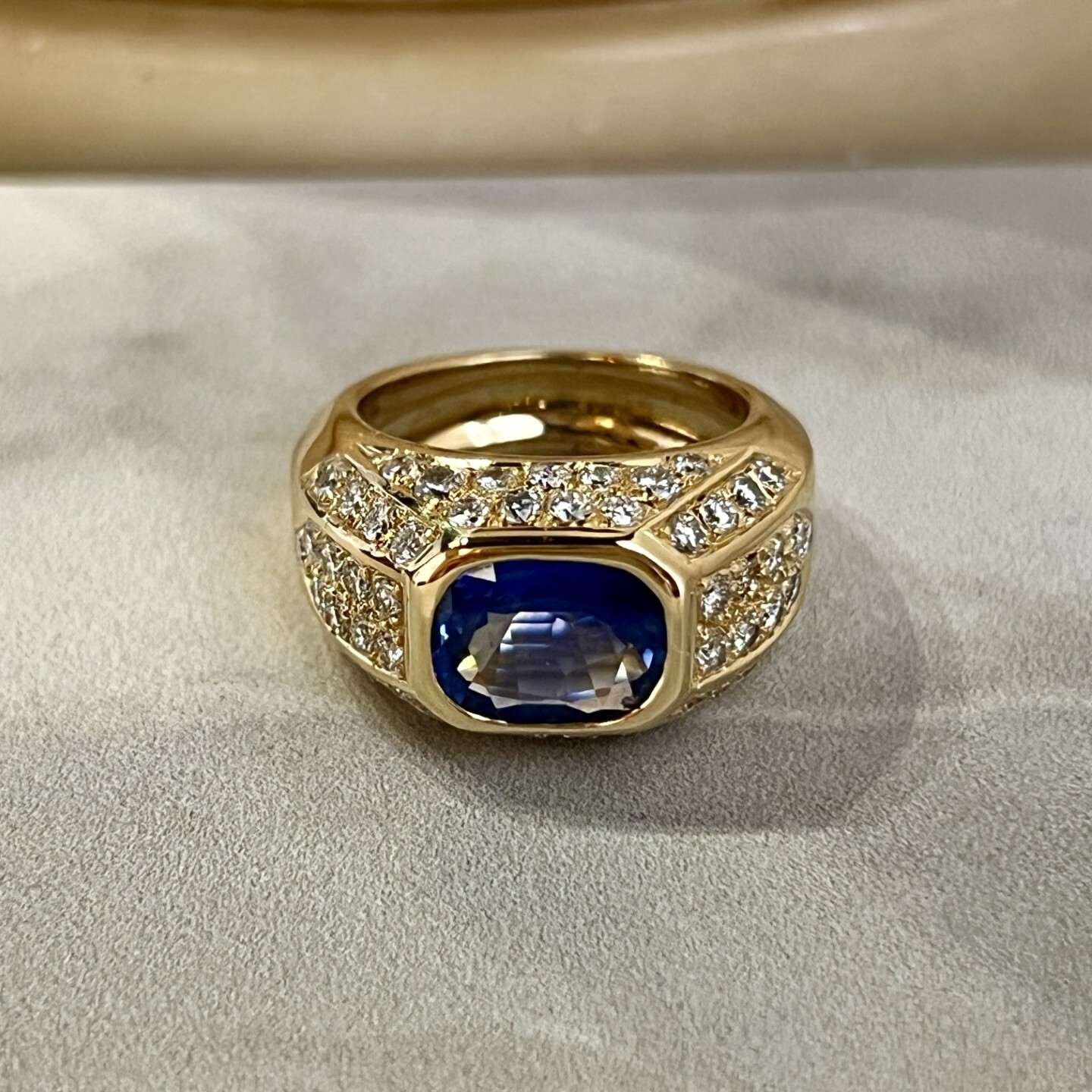 Vintage Bague Dôme en or jaune, saphir de 2 carats et diamants pour 1 carat