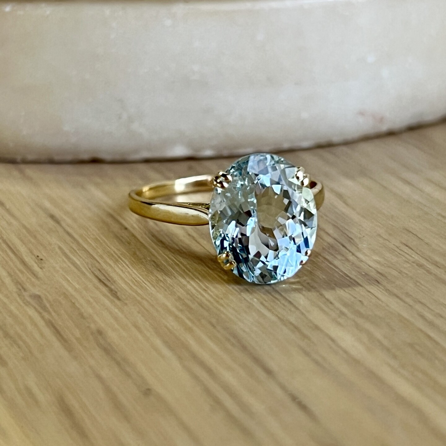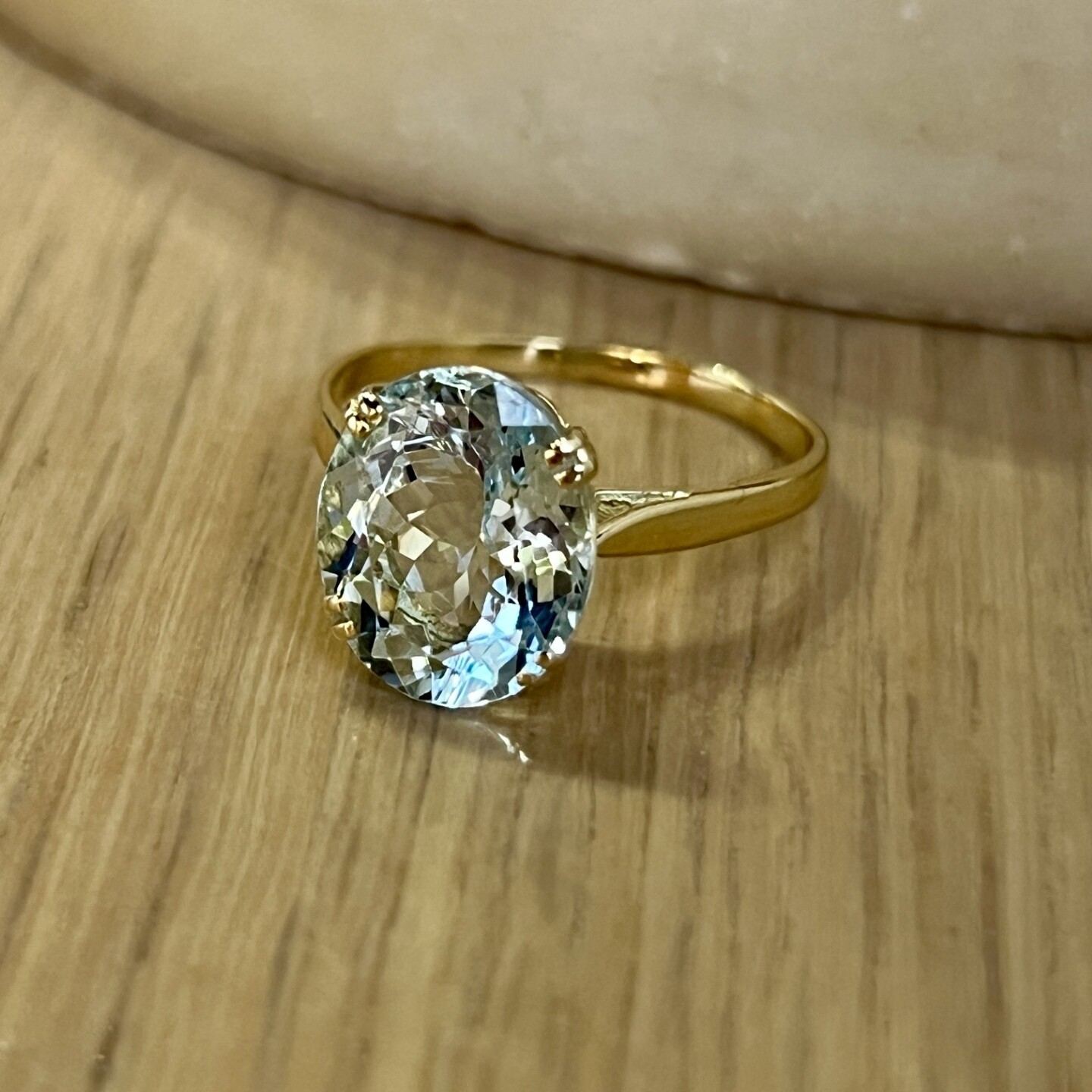 Vintage Bague en or jaune et aigue-marine de taille ovale de 4,80 carats