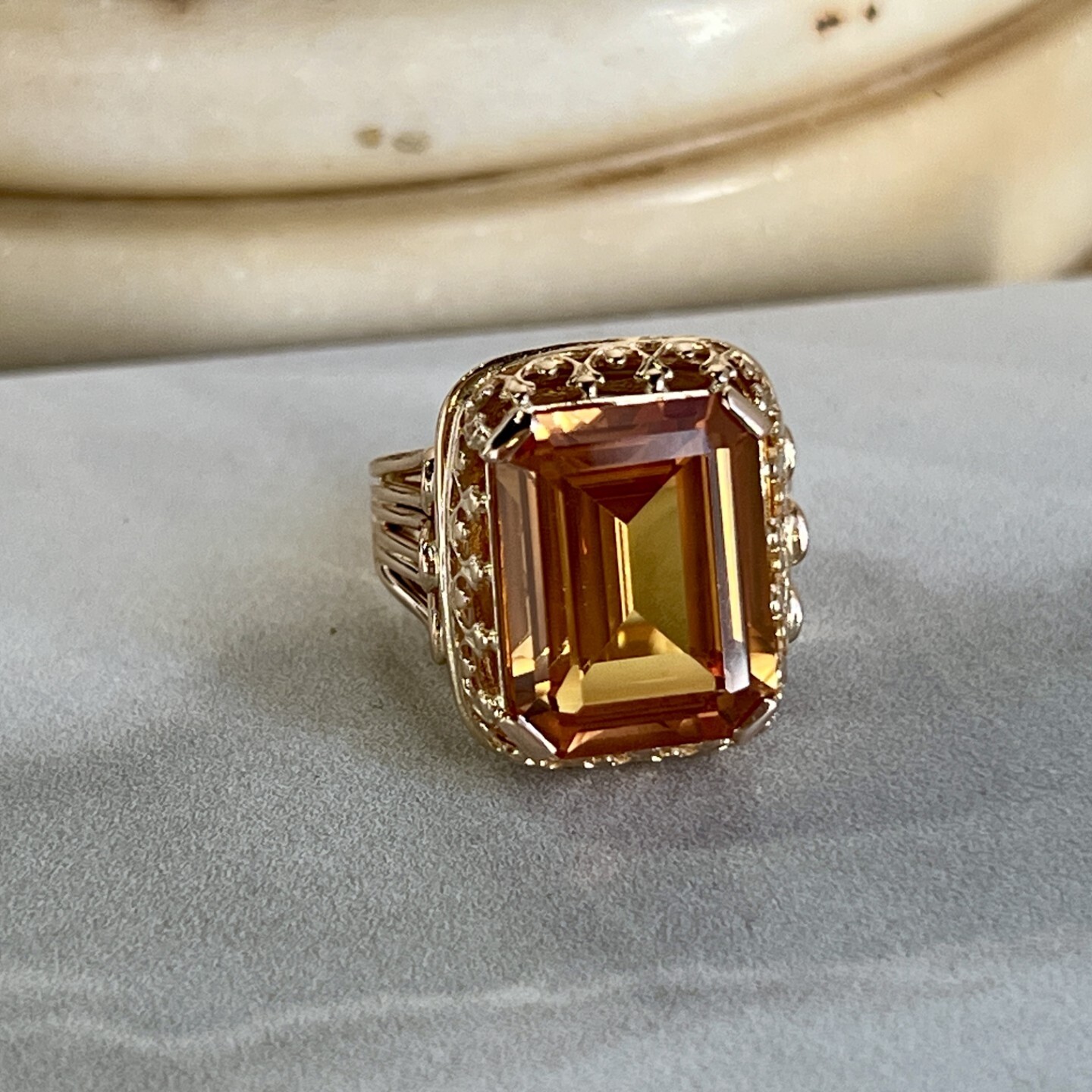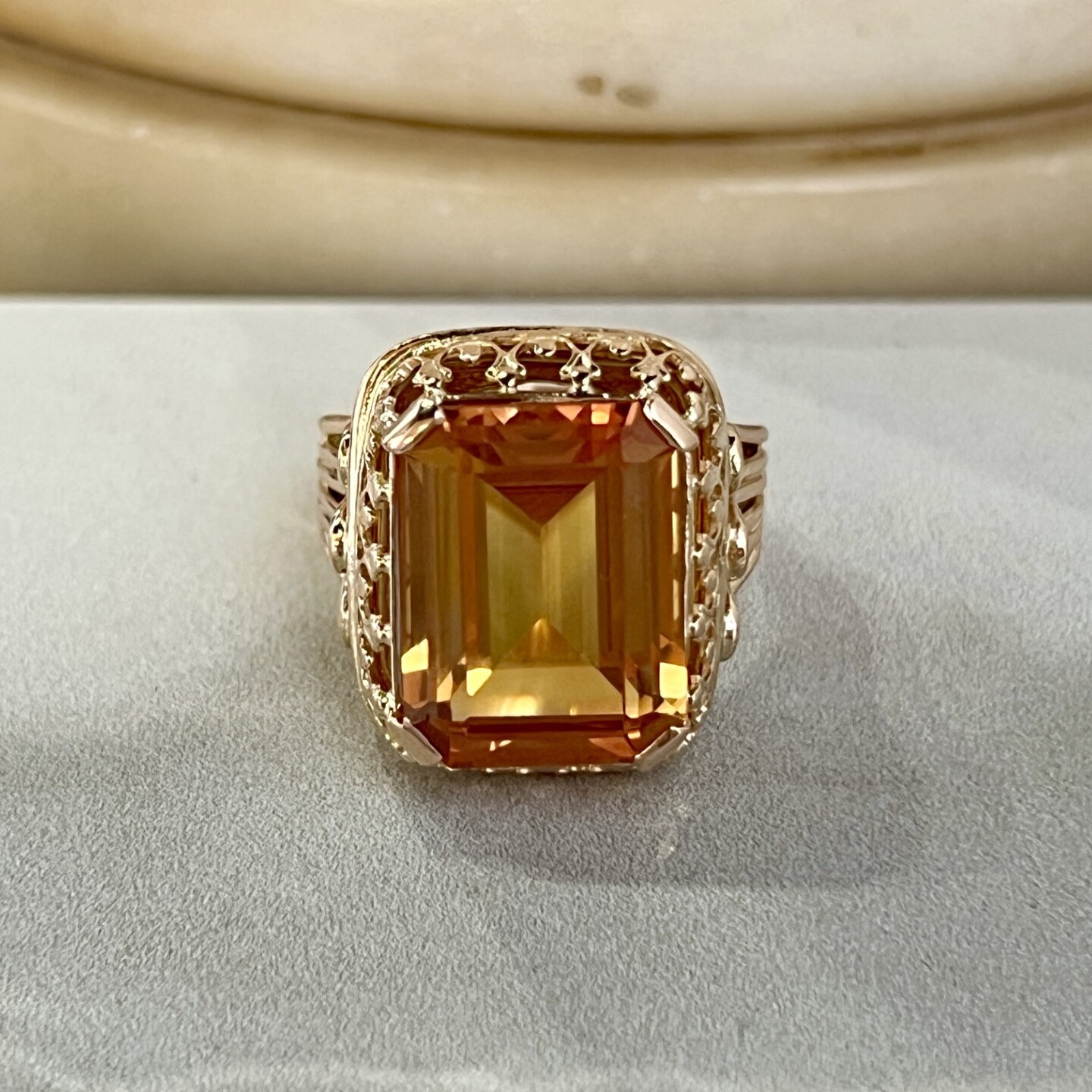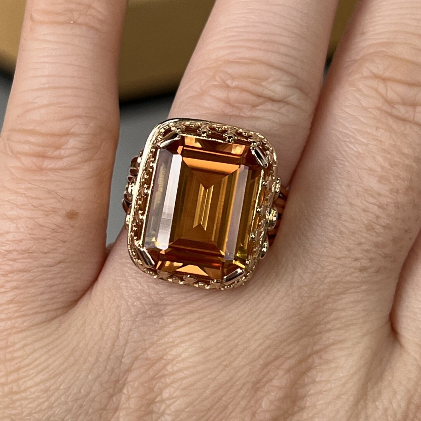 Vintage Bague en or rose et citrine de taille émeraude 9,50 carats