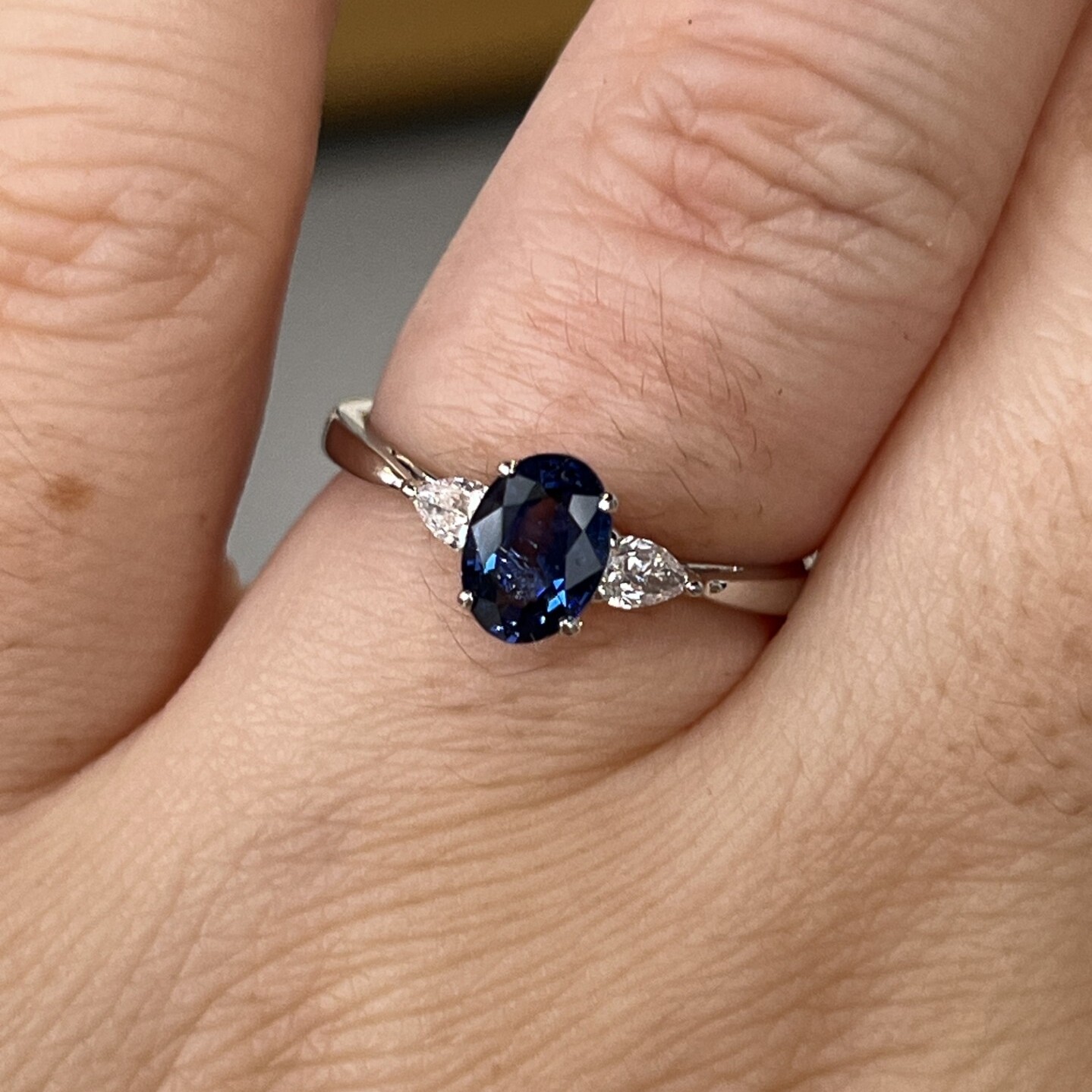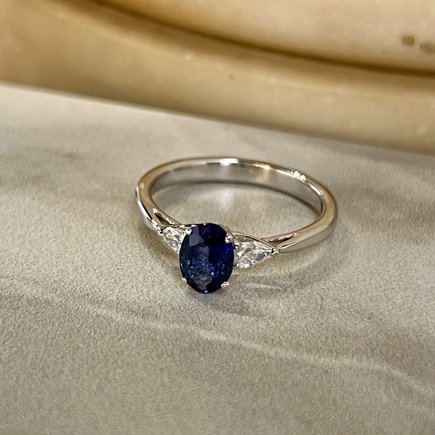 Mademoiselle Bague Mademoiselle en or blanc, saphir ovale de 0,90 carat et diamants de taille poire