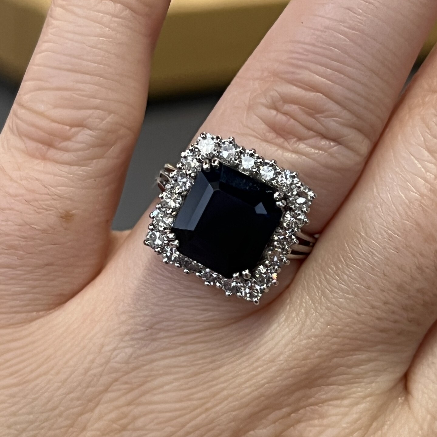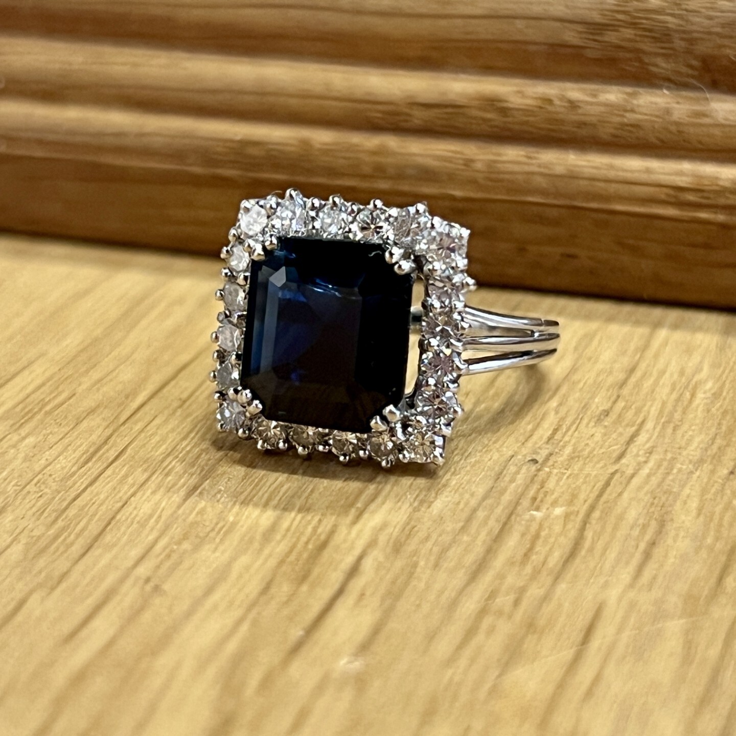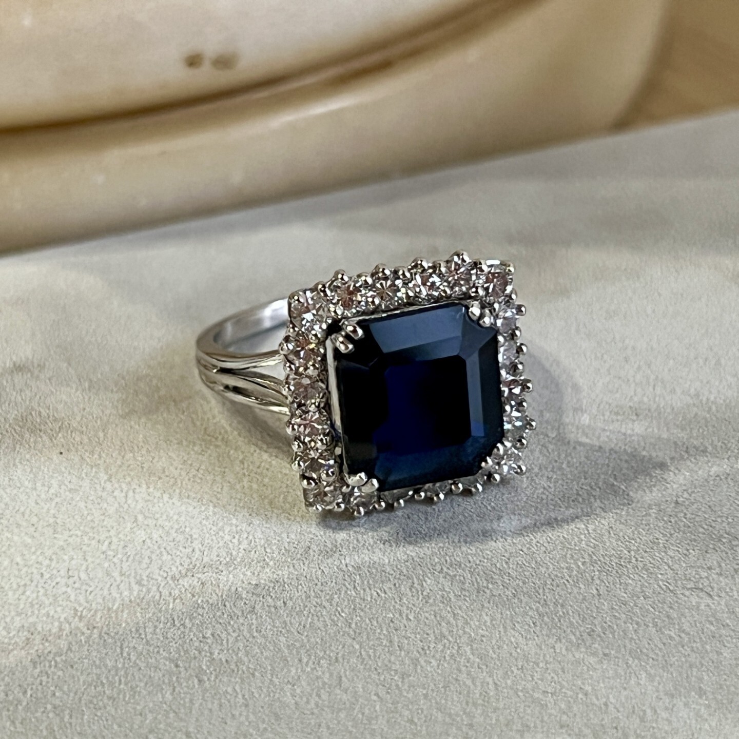 Vintage Bague Marguerite en or blanc, saphir de 4,70 carats et diamants pour 1 carat