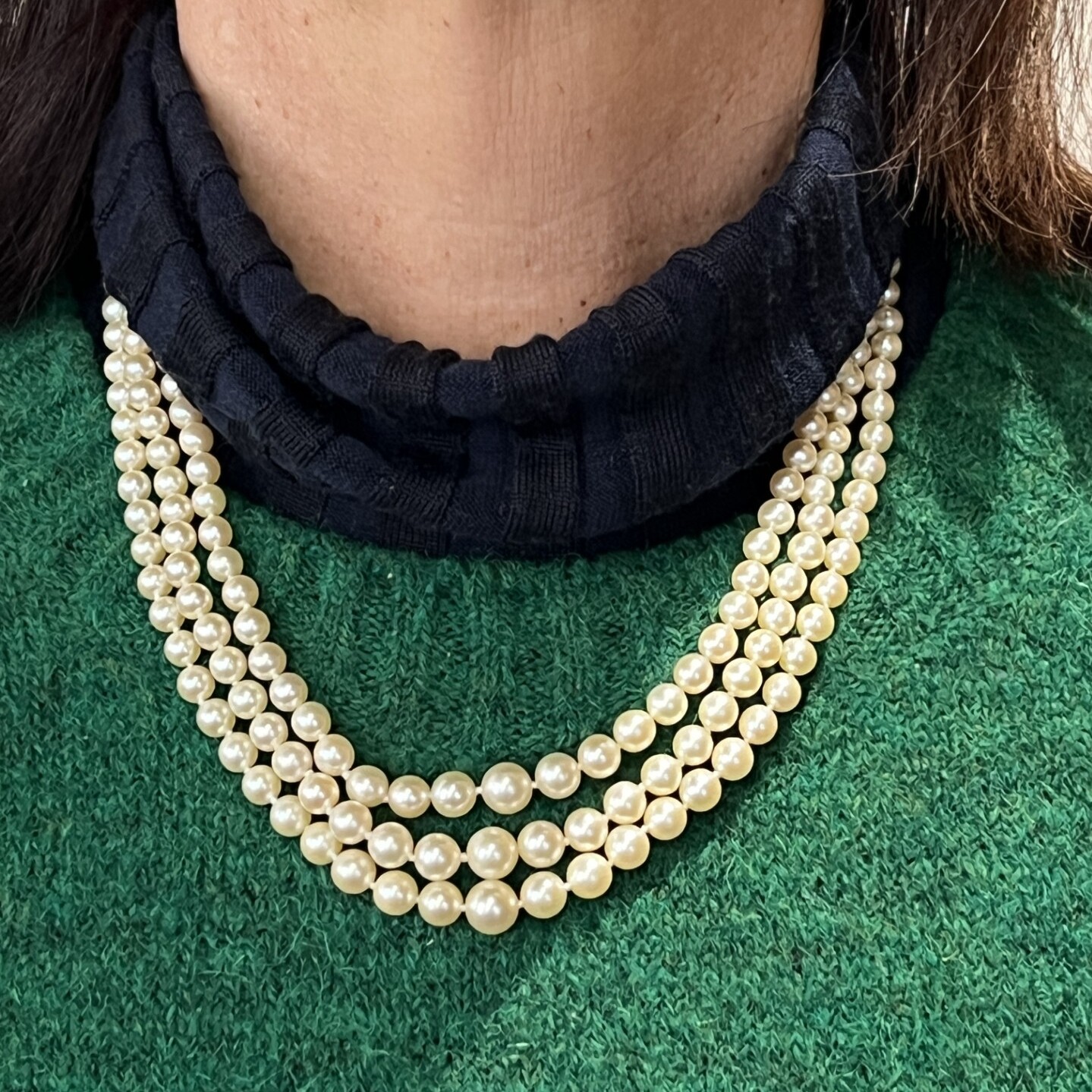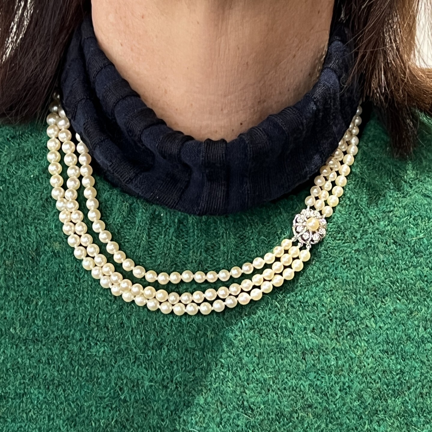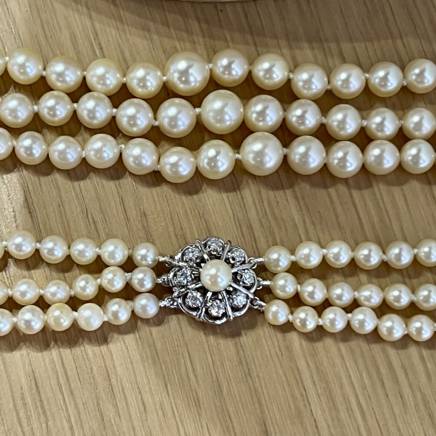 Vintage Collier torsadé en perles. Fermoir en or jaune