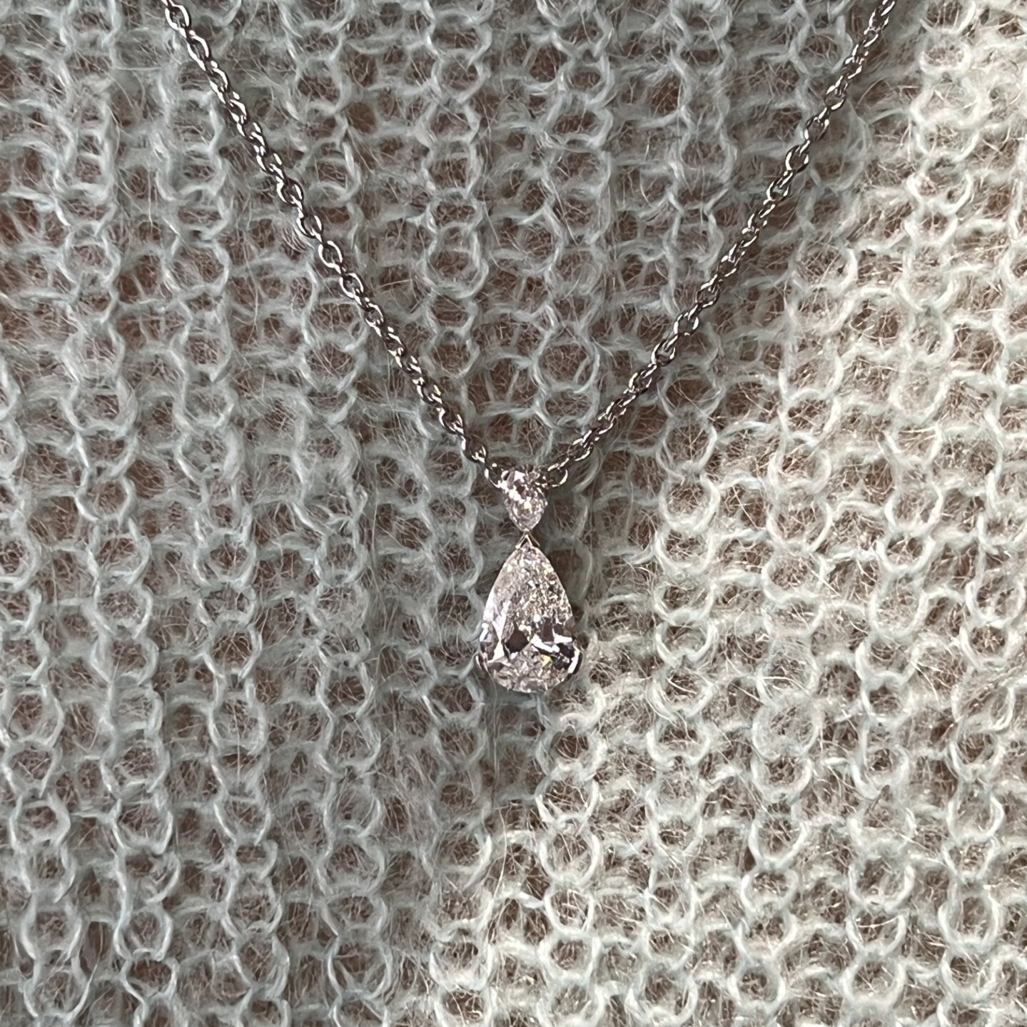 Absolu Collier Absolu en or blanc, diamant de taille poire de 1,22 carat blanc G SI2 et diamant de taille poire de 0,10 carat