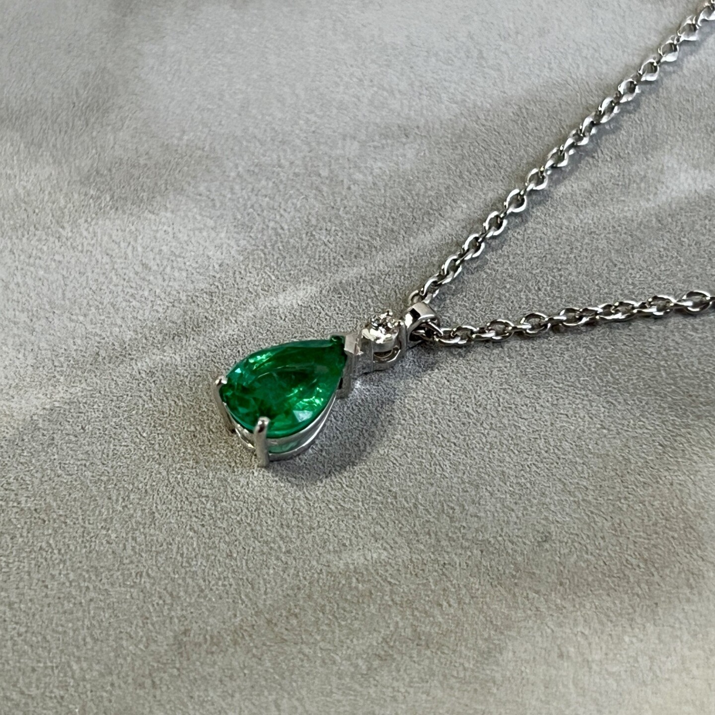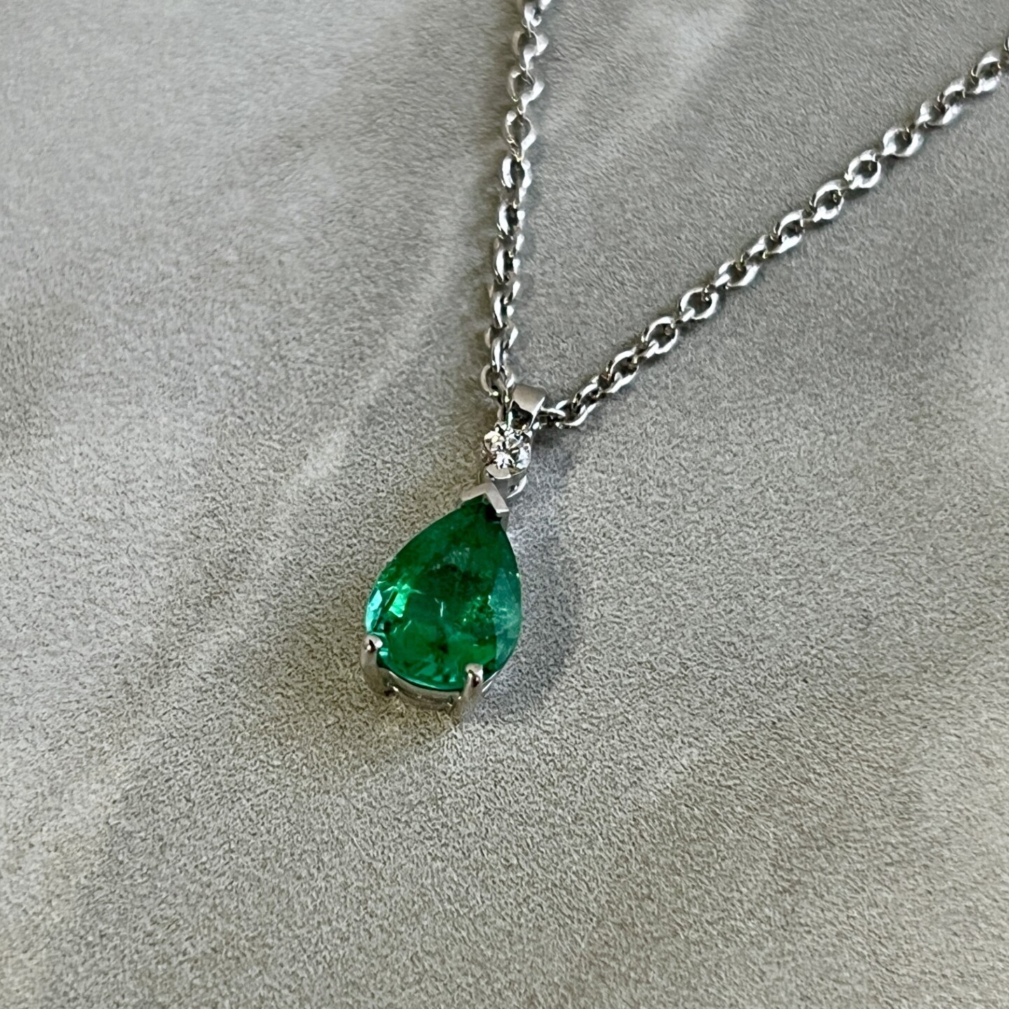 Absolu Collier Absolu en or blanc, émeraude de taille poire de 0,92 carat et diamant