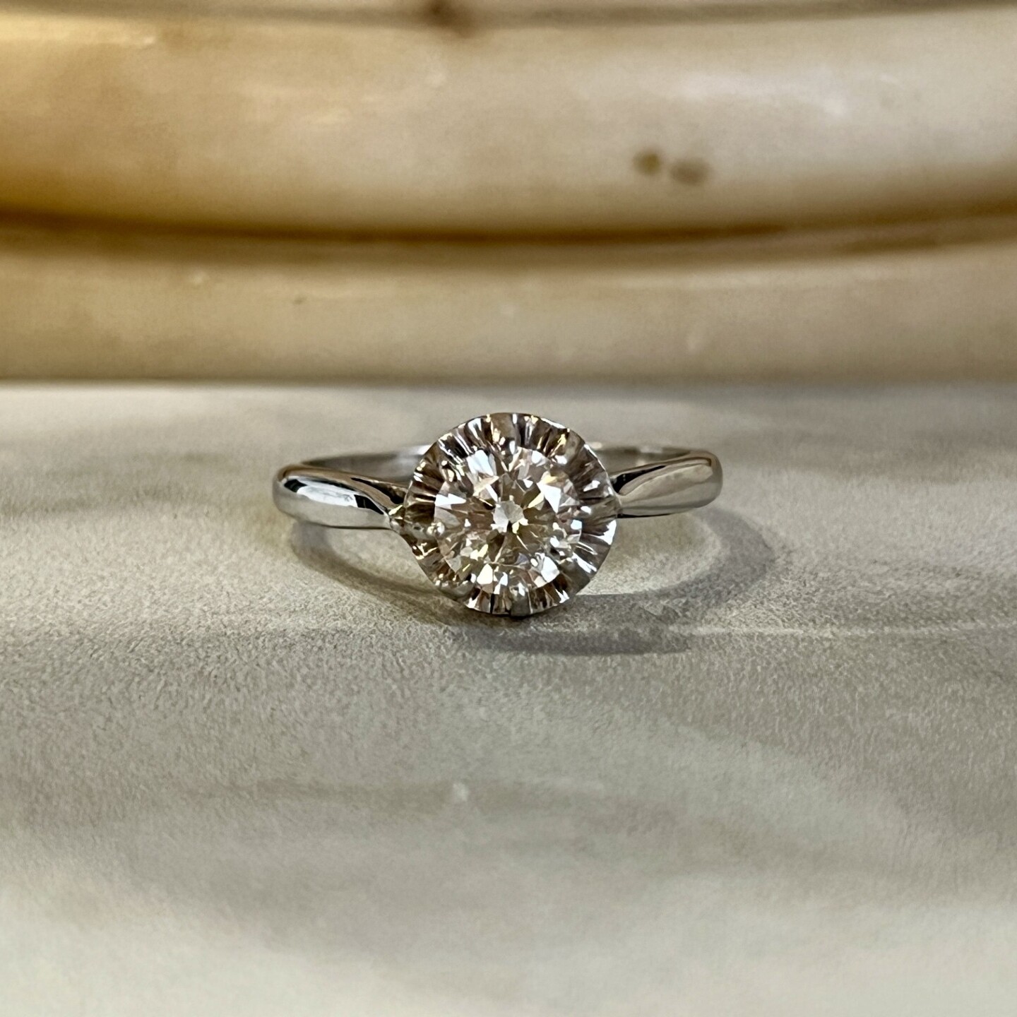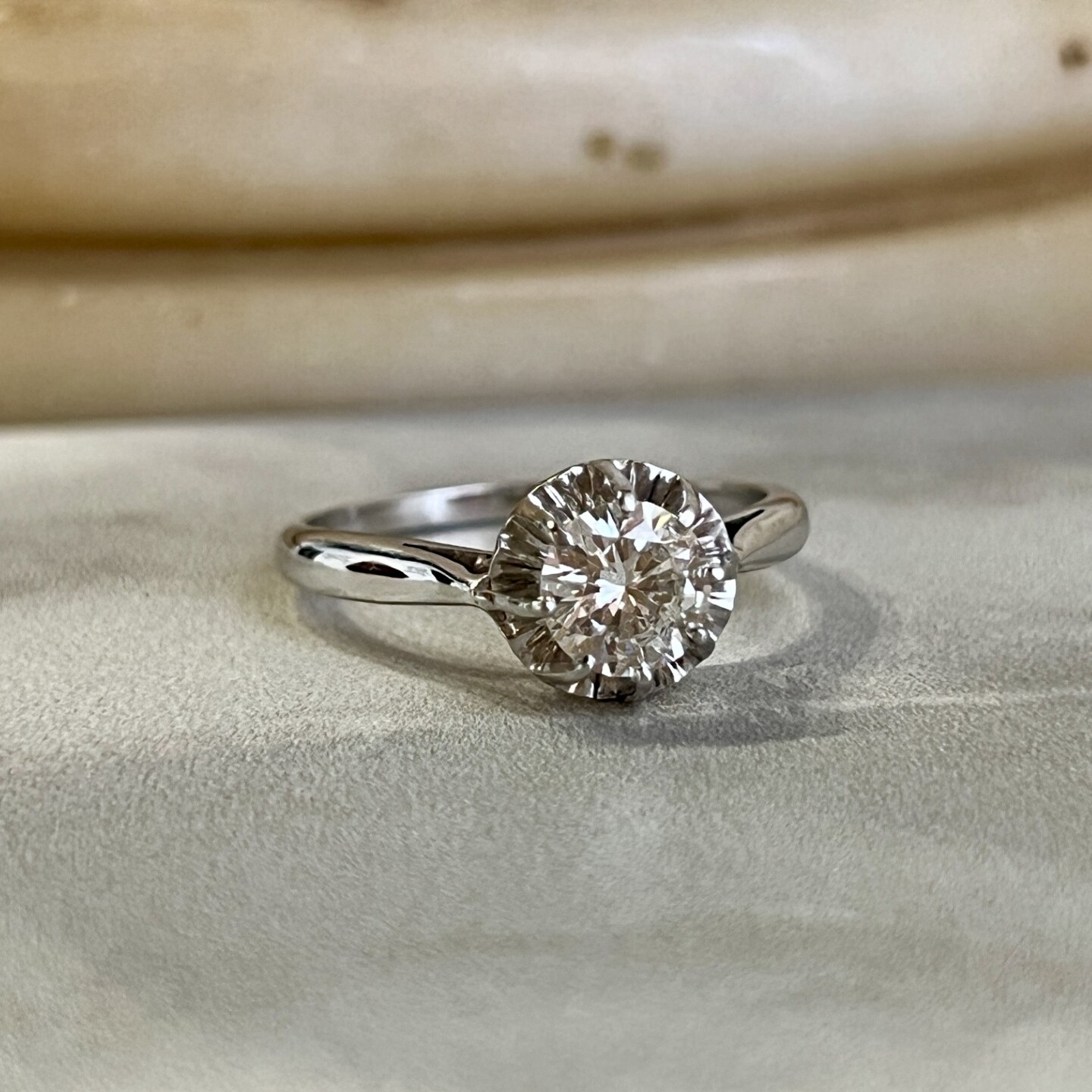 Vintage Solitaire en or blanc, platine et diamant de 0,85 carat blanc H SI
